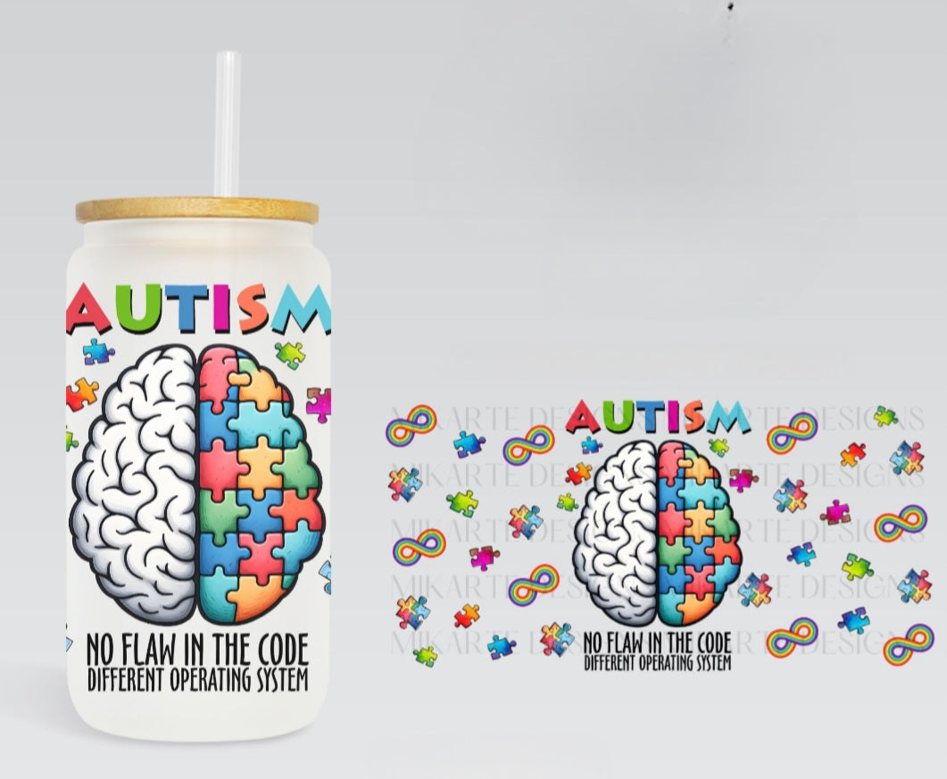 No Flaw In the Code - 16oz Frosted Glass Can w/ Bamboo Lid and Glass Straw