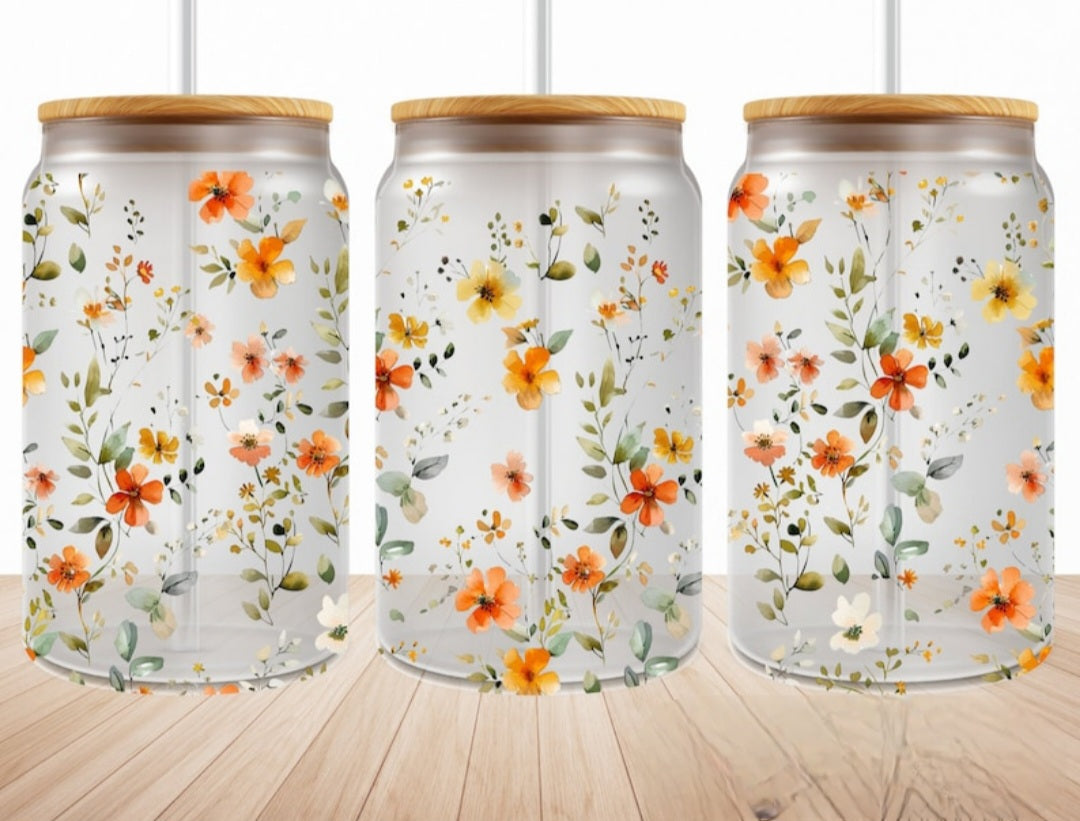 Orange Blooms - 16oz Glass Tumbler w/ Straw