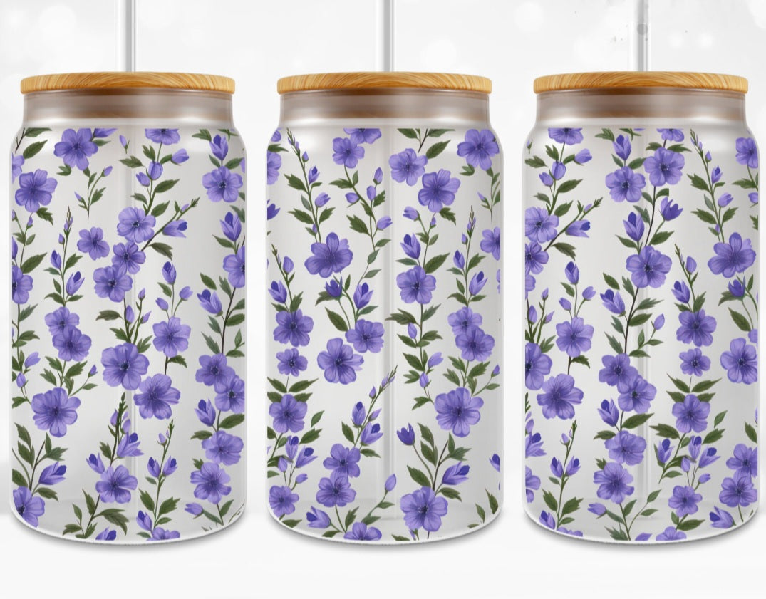 Purple Blooms - 16oz Glass Tumbler w/ Straw